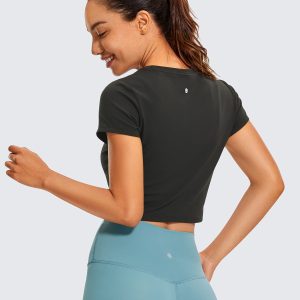 Butterluxe Short Sleeve Shirts for Women High Neck Crop Basic T-Shirts Fitted Gym Workout Tops