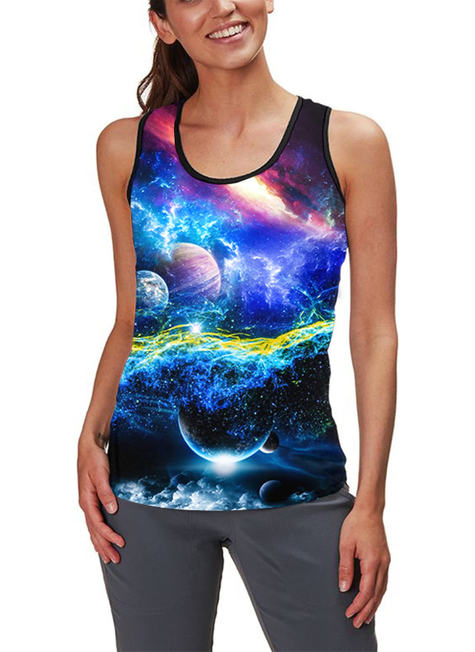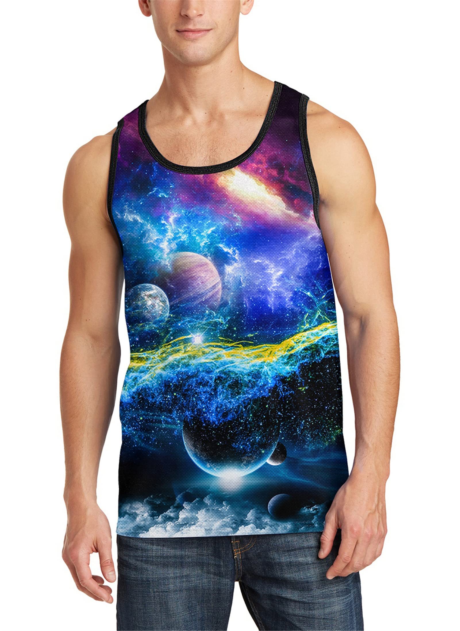 - Novelty 3D Graphic Design: The cool tank tops features a vibrant all over print on front and back. Unique and Fashion design offer a leisure look, the colors are vibrant and not fading.