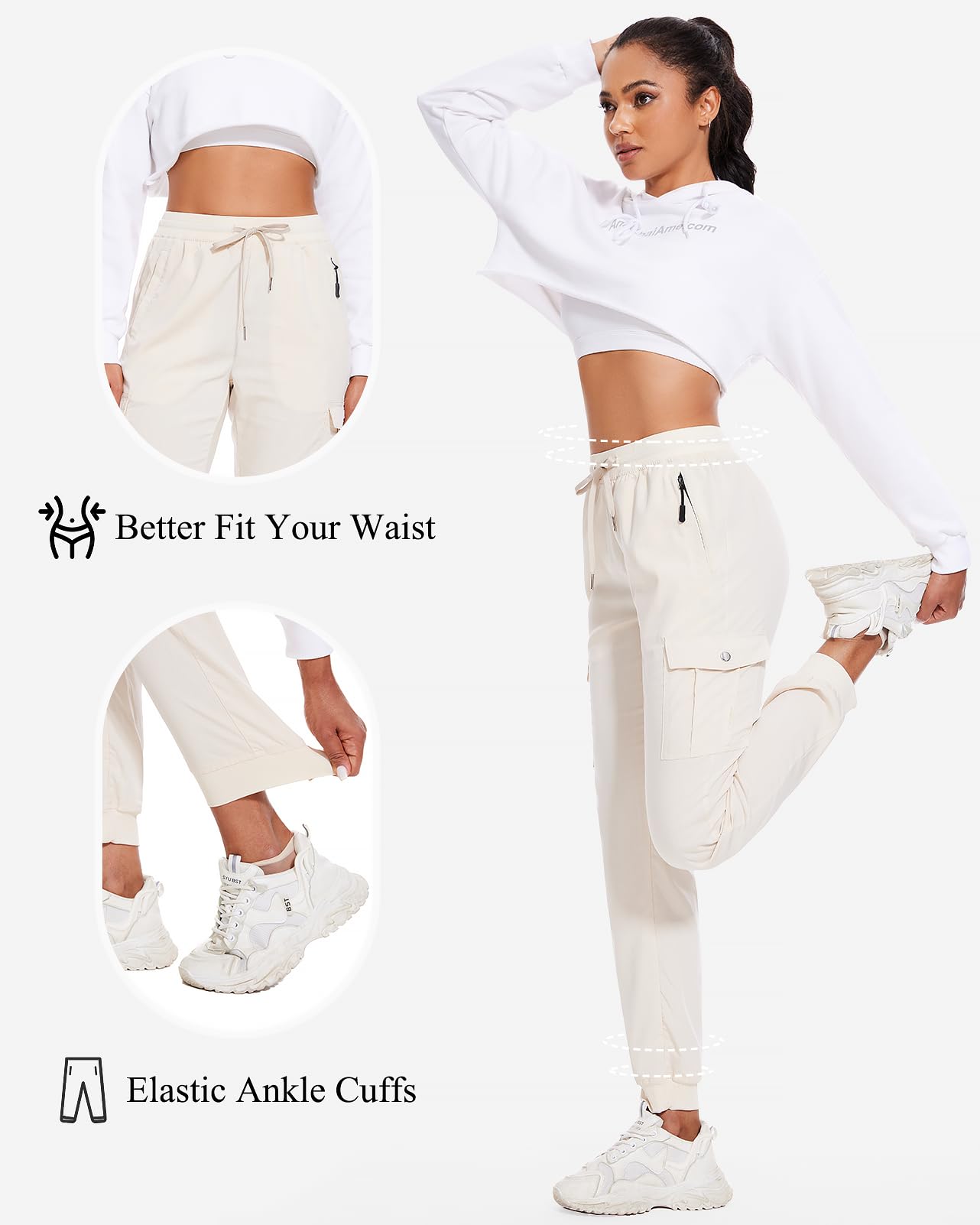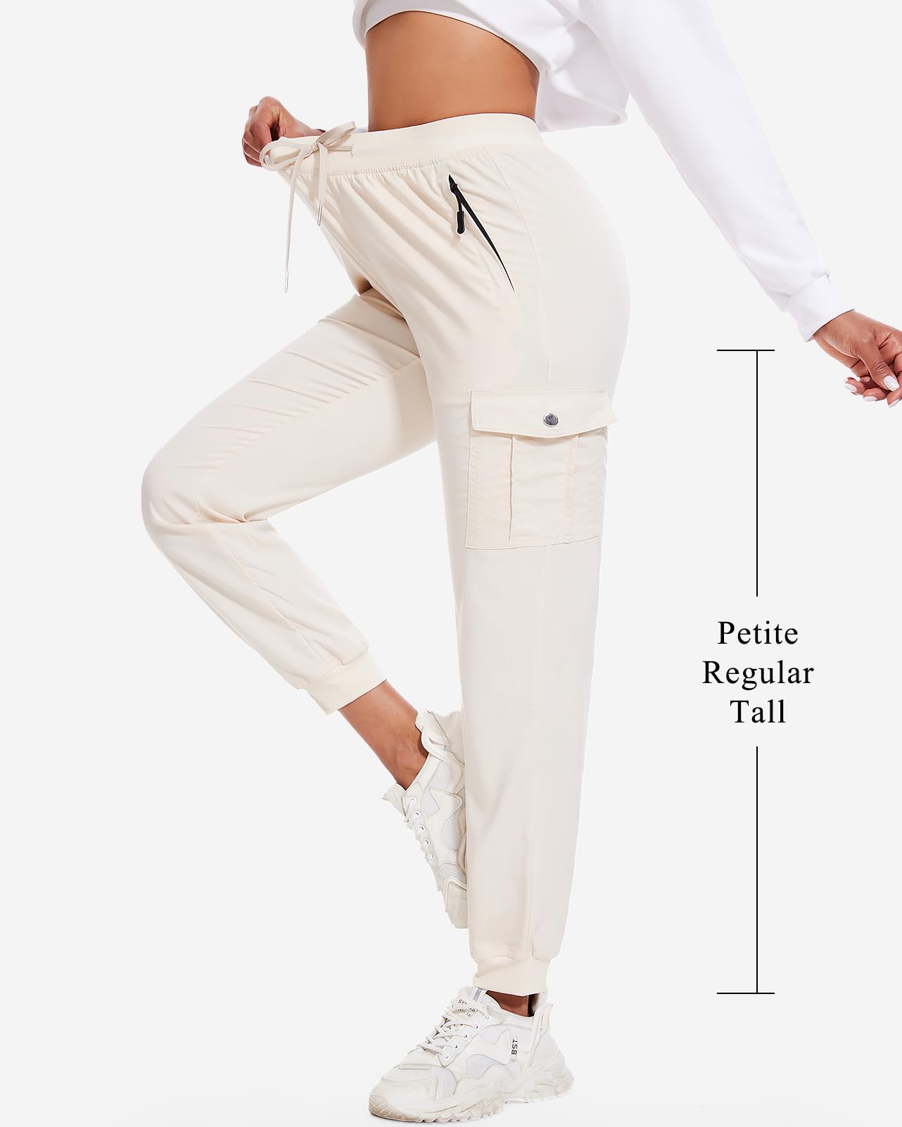 - Mid-rise, ankle-length, tapered jogger style with three inseam options, suitable for all body types