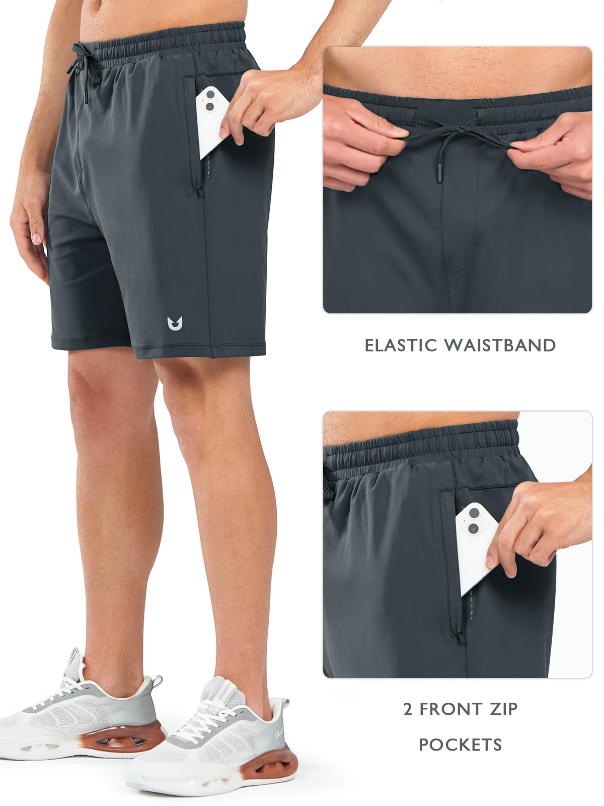 - Elastic Waistband and Drawstring: our 7 inch mens athletic shorts feature an elastic waistband for a comfortable fit and added convenience. The drawstring allows you to customize the elasticity of these active shorts to suit your preferences